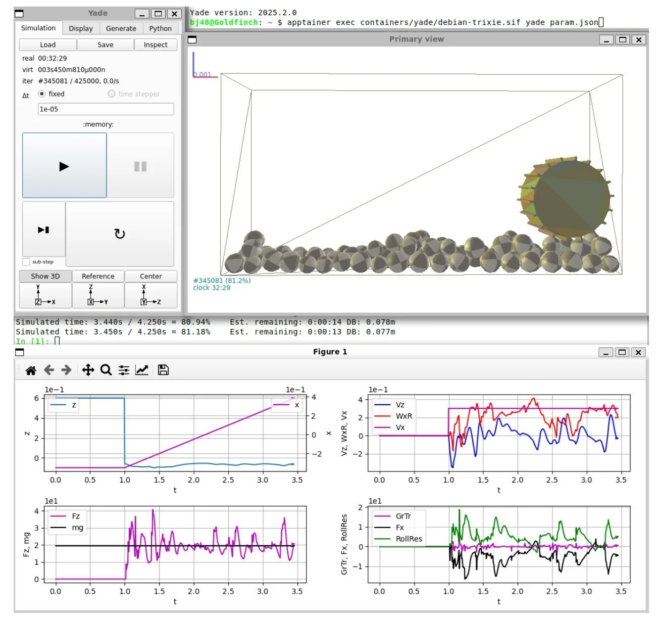 To support student teams in the design process, researchers at Mississippi State University developed an open-source wheel–soil simulation tool that competitors can use to model and evaluate their wheel designs before submission. The simulator is based on the open-source YADE discrete element method (DEM) framework, which allows users to simulate granular soil and wheel interaction numerically. YADE is an extensible open-source DEM framework written in C++ with Python scripting, commonly used for modeling granular materials, soil behavior, and particle interactions.